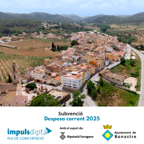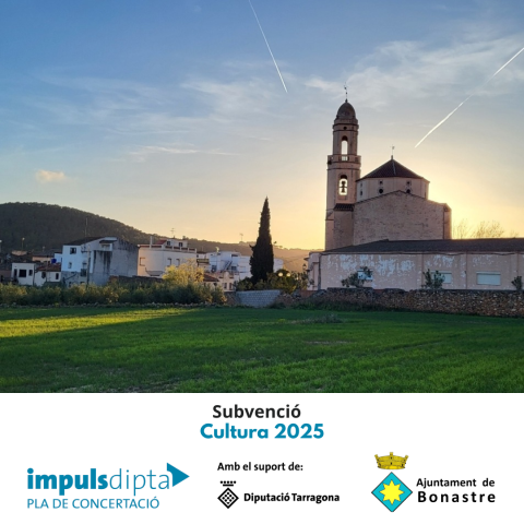 L'Ajuntament de Bonastre ha rebut una subvenció de la Diputació de Tarragona, dins de la convocatòria Pla ImpulsDipta, per Cultura de l'exercici 2025, per l'import de 8.516,33 euros. S'han realizat activitats per difondre la cultura i el patrimoni local i espectacles per promoure la dinamizació al...